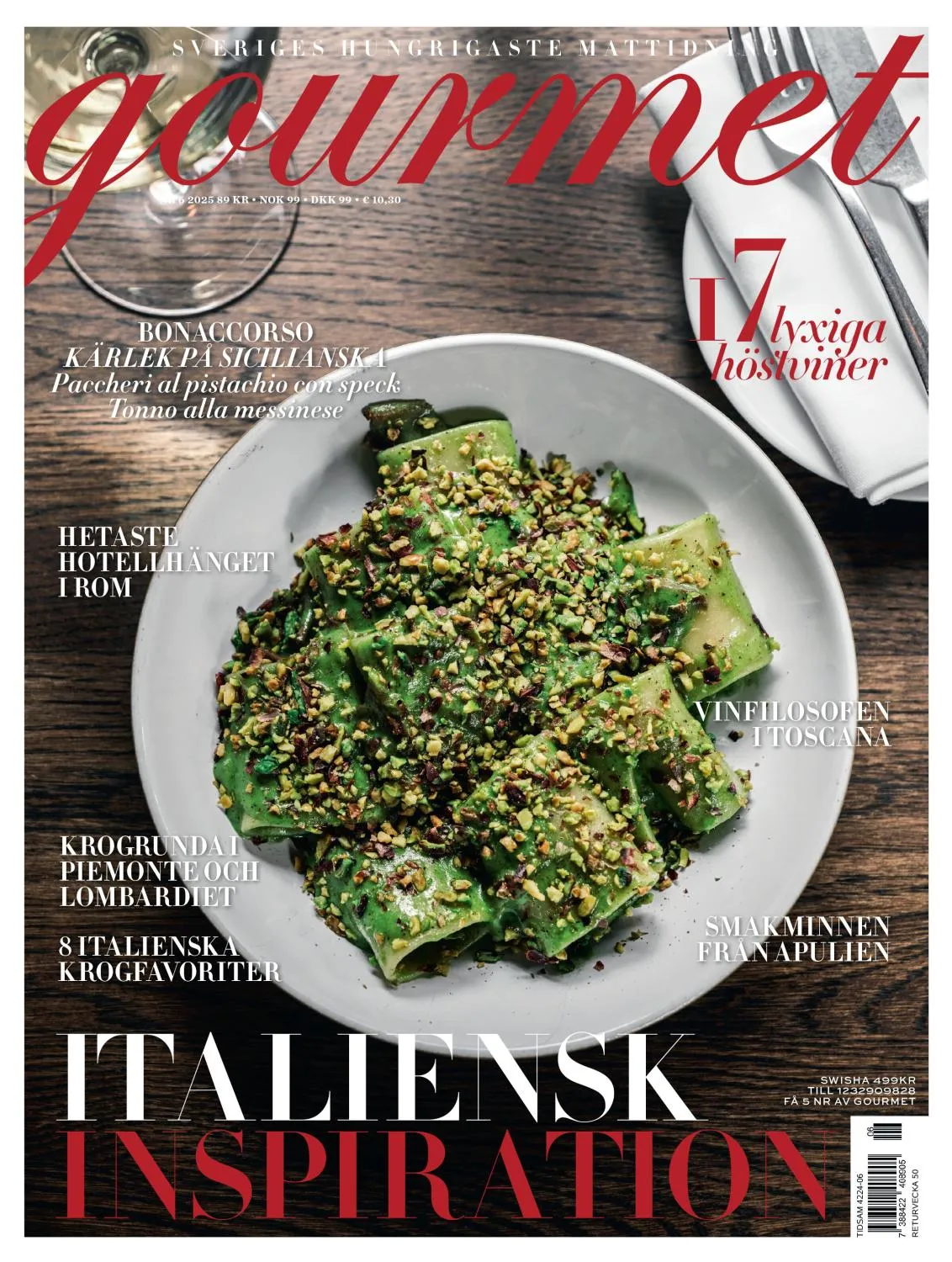 Gourmet ges ut sedan 1980 och utkommer med 10 nummer årligen. Här läser du först om nya trender inom mat och dryck, får kvalificerade dryckesrecensioner och tips om kulinariska resor samt möter spännande profiler inom restaurangvärlden. Dessutom det mesta om det senaste som rör kök och produkter kopplade till matlagning, allt i ett smakfullt koncept. Till tidningen finns även en välbesökt hemsida: www.gourmet.se. Gourmet är en generös portion snyggt förpackad matglädje!