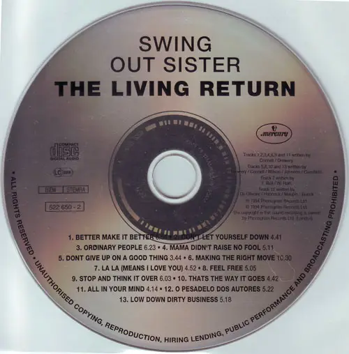 The Living Return is the 1994 album by British group Swing Out Sister. This was released by Mercury.
