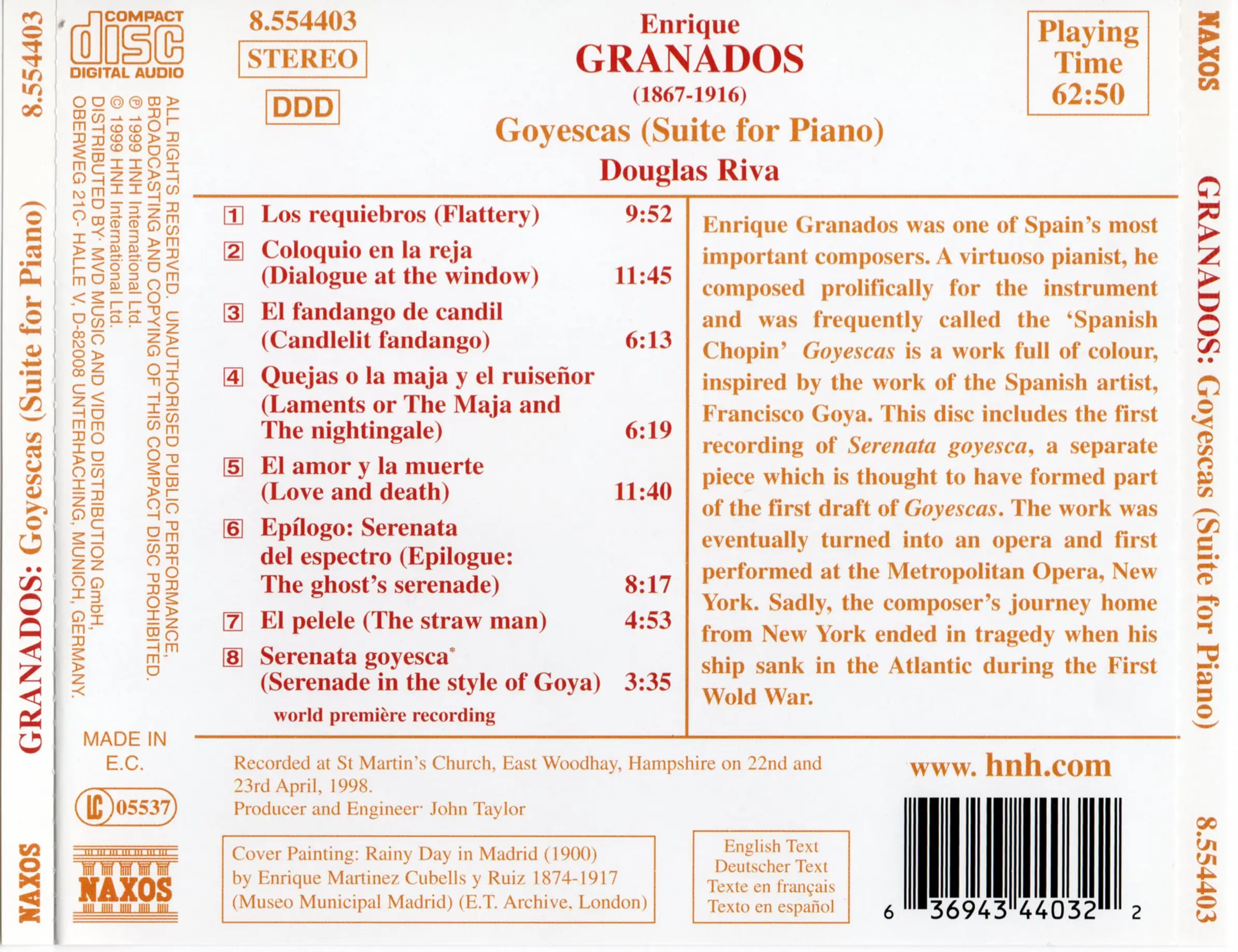 Douglas Riva - Enrique Granados: Goyescas (Suite for Piano) (1999)