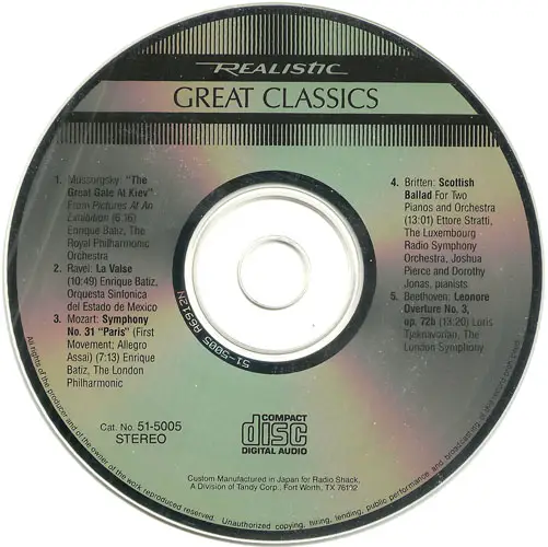 Great Classics is a 1986 compilation, a classical musical sampler for the ages. This was released by Realistic, the brand name created by the Radio Shack company.