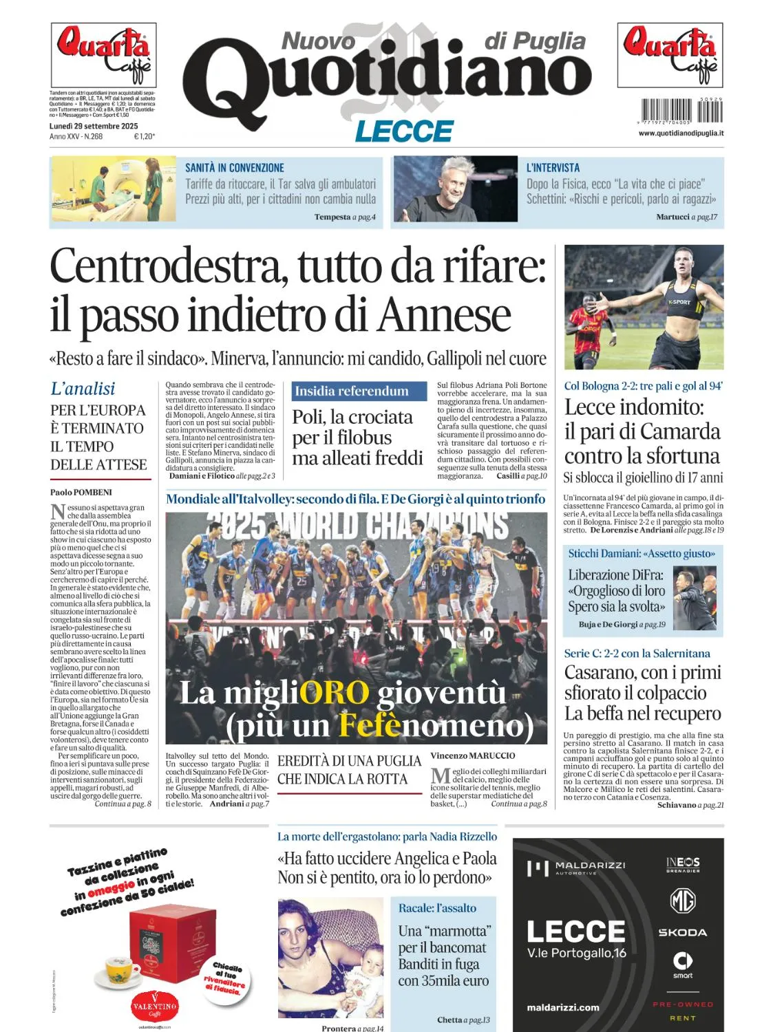 Quotidiano di Puglia Lecce - 29 Settembre 2025