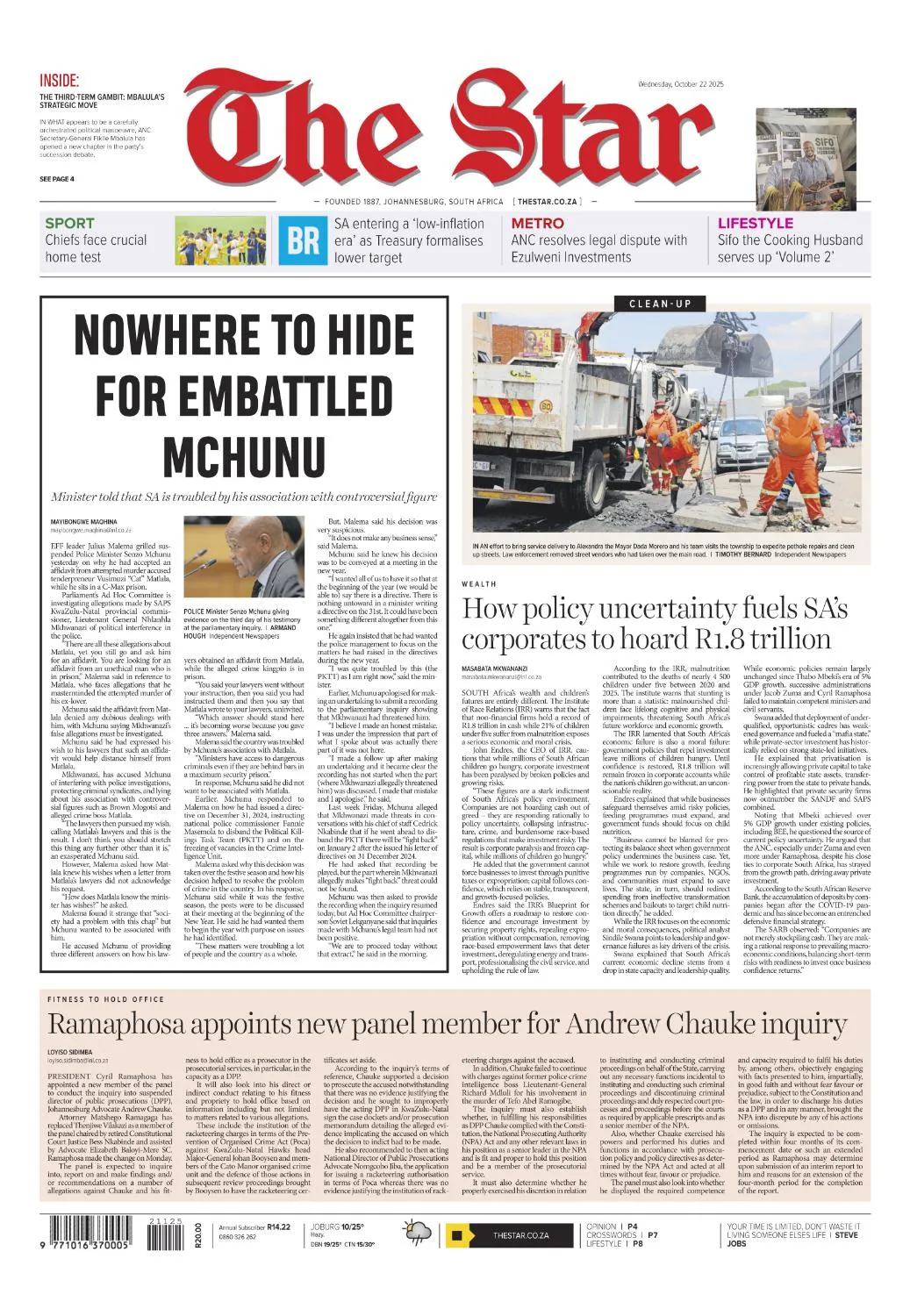 Johannesburg-based newsroom covering local, national and international news – with strong analysis, business reporting, sport and opinion.