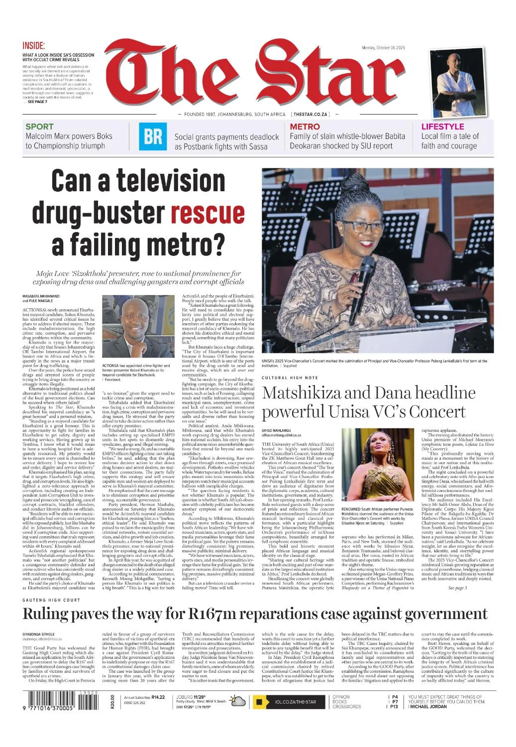 Johannesburg-based newsroom covering local, national and international news – with strong analysis, business reporting, sport and opinion.