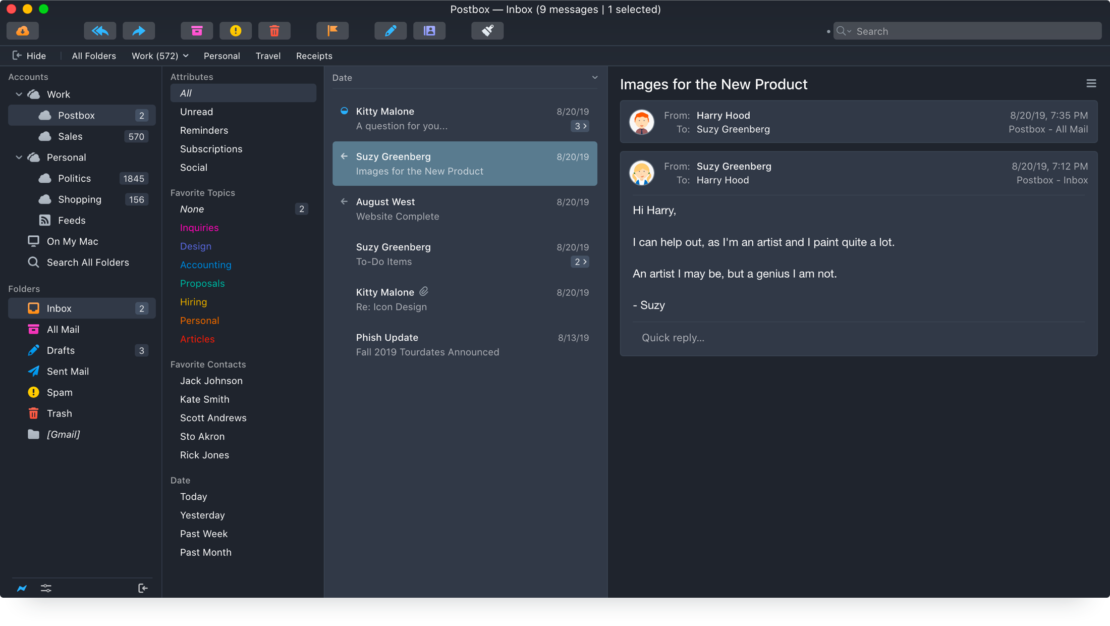 Tackle what's important right now using the real-time filters of Postbox's innovative focus pane. Just want to see all unread messages from your team from today? Done.