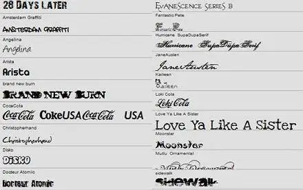 EL&font block , Evanescent , FantasticPete3.03 , HurricaneSDS , JaneAust , Kaileenw , LokiCola , Love Ya Like A Sister , Moonstar , Mutlu Ornamental , Sidewalk , Tommortel , Urban hook-upz , VonFont , VTKS Mural