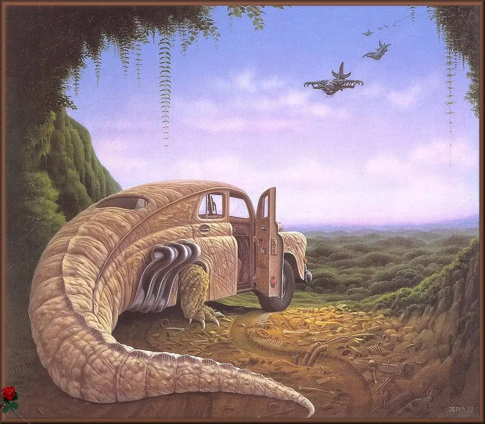 Born in Northern Poland in 1952, Surrealist Jacek Yerka resides in the Polish countryside with his wife and children. Possessing a tremendous ability to convey reality through his meticulous brushstrokes. Yerka adds a remarkable twist of fantasy to each and every painting. He gains his vision from dreams and the timeless surroundings of his pastoral-like existence.
