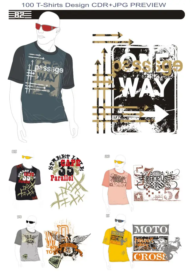 100 T-Shirts Design CDR + JPG Preview | 66 MB | RS