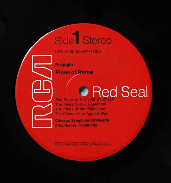 Stirring readings of the two most popular of Respighi's three Roman tone poems by the Chicago Symphony Orchestra under Fritz Reiner. The familiar compositions are performed with all their colors showing, and the record is sure to be in demand among both old and new collectors.