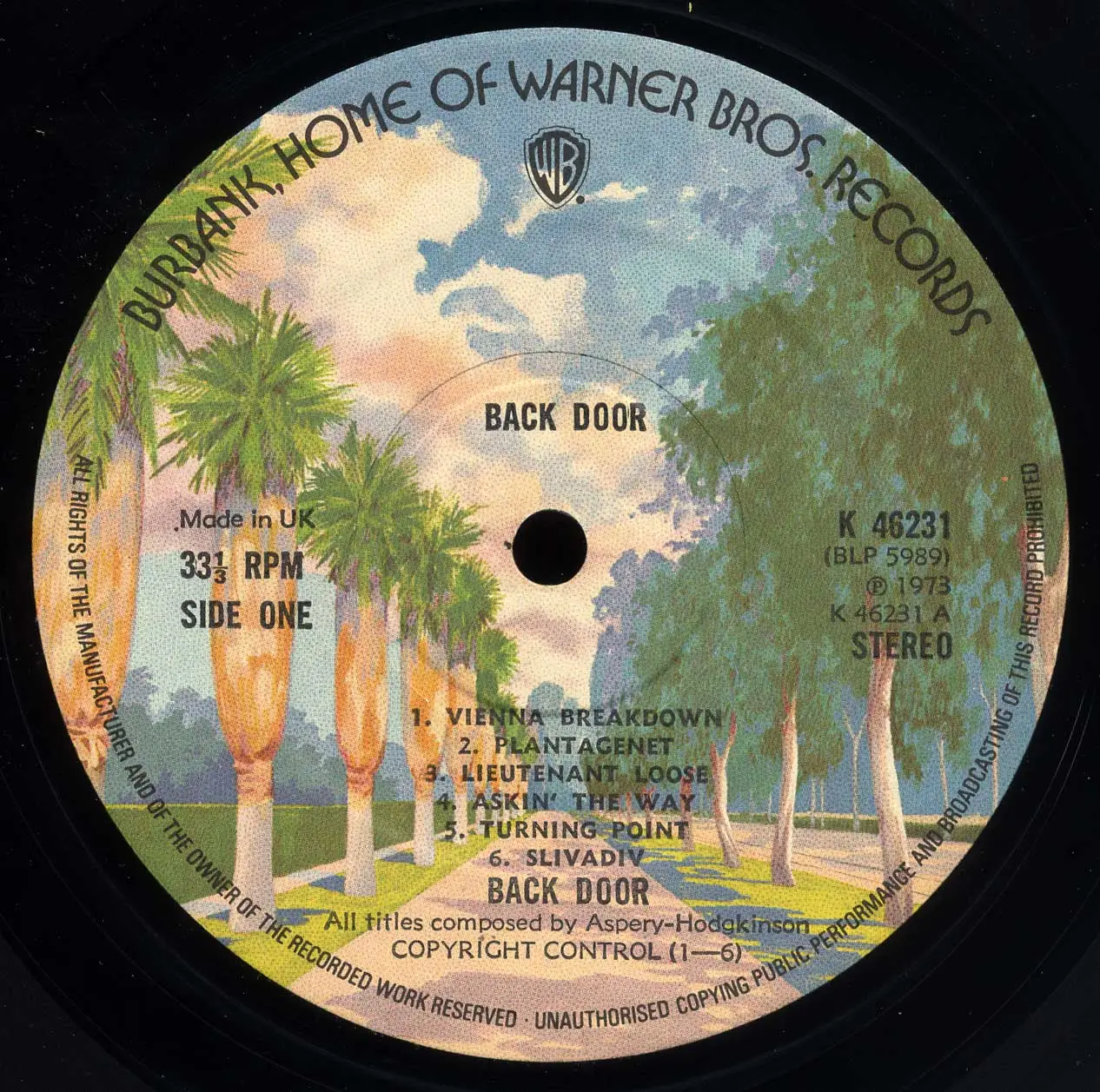 Back when giant carnivorous bass players ruled the Earth, Back Door were the hungriest of them all. They formed in 1971 as a jazz-rock trio, with Colin Hodgkinson (bass, vocals), Ron Aspery (keyboards, sax), and Tony Hicks (drums). What sets Back Door apart is the bass playing. While a few bassists – such as Chris Squire, John Entwistle, and Jack Bruce – have tried exploiting the bass' potential as a lead instrument, they were confined by bands where the guitar or keyboards were the usual lead. Not Colin Hodgkinson; he dispenses with these instruments altogether, allowing the bass to be the sole lead instrument. He strums chords on it the way you'd expect someone to with a six-string. Later bands like Ruins and Sadhappy have taken up this challenge, but many of Back Door's achievements remain unsurpassed.