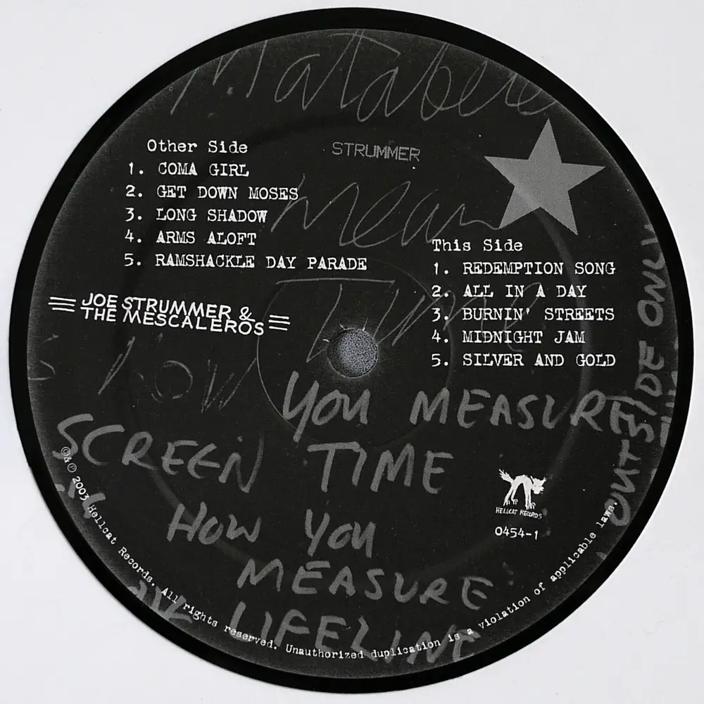 Listening to the crunchy rocksteady thunder in "Go Down Moses," with its monstrous dubbed-out bass and lyrics about the sellout of the world wholesale, listeners can hear Strummer laughing in the face of all the darkness multinationalism can muster. "Long Shadow," with its minor-key architecture and acoustic guitars played in pure Americana rambling style, was written for Johnny Cash but never recorded. Its protagonist crosses deserts and rivers; he haunts the places of desolation in order to speak with the voice of the Storyteller. The song's style and spirit evokes the ghost of Cisco Houston as Strummer sings: "I'll tell you one thing that I know/You don't face your demons down, you gotta grapple with 'em Jack/And pin 'em to the ground…And I hear punks talk of anarchy/I hear hobos on the railroads/I hear mutterings on the chain gangs/It was those men who built the roads/And if you put it all together/You didn't even once relent/You cast a long shadow/And that is your testament…." Other rockers include the burning revolution drama of "Arms Aloft," with a refrain that is among the most anthemic and raucous Strummer ever wrote. With wah-wah guitars, distorted bass, boombastic drums and cymbals, it is the hardest rocking track on the set. Also strong are the searing "All in a Day," with its razor-wire Telecaster stomp, and the medium to slow heaviness of "Burnin' Streets." There are two covers on Streetcore. First is a deeply moving reading of Bob Marley's "Redemption Song," played acoustically by Strummer, Smokey Hormel, and Benmont Tench, and produced by Rick Rubin. This is the only cut that the Mescaleros don't appear on; it wasn't recorded for this set but is included by Luce (Strummer's widow) and the band as a hinge piece for the front and back of the album to hang on, and it works gloriously. The other is the closer, a cover of the Bobby Charles' classic "Before I Grow Too Old," retitled here as "Silver and Gold." It's a barroom song played in elegiac, Anglo country style – think of the Mekons on Fear and Whiskey. Strummer's last line in the song is, "I've got to hurry up before I grow too old," before he speaks to us in his grainy Cockney voice, "OK, that's a take." It's almost as unbearable as it is unforgettable. Streetcore is the sound of Joe Strummer hitting his stride with his own band on his terms both lyrically and musically. The fact that this is a final album for Strummer is beside the point; this is one of the best rock & roll albums of 2003, and truly the finest, most cohesive work he did after London Calling. –Allmusic.