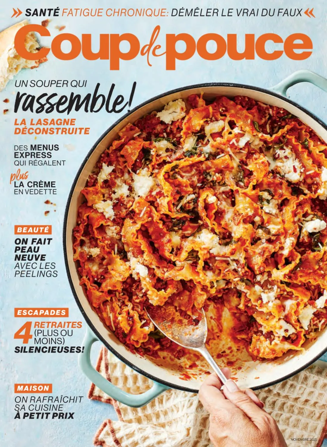 Depuis plus de 25 ans, Coup de pouce a su évoluer tout en restant proche de vous. Parce qu’il est à l’image des femmes d’aujourd’hui qui ont à cœur leur bonheur et celui de leur famille. Au fil des pages, vous trouverez des recettes gourmandes, des menus festifs et des trucs de chef. Vous apprécierez nos chroniques originales et pertinentes sur la beauté, la mode, les finances personnelles, la famille et la déco. Coup de pouce est vraiment LE magazine qui vous facilite la vie.