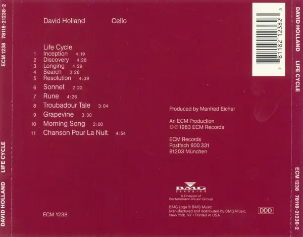 Holland picks up here where he left off on Emerald Tears with this overlooked solo album, which finds him swapping his usual upright for cello. While Holland is obviously no stranger to the instrument, it is such a rare pleasure to hear the cello alone at his bow. The bread and butter of this set is the eponymous five-parter, which indeed seems to trace a life from beginning to end. It is not only a cycle, but also its affirmation, such that the birth cries of “Inception” rend us with the thrill of being in a way that suggests awareness of a former existence.Track List