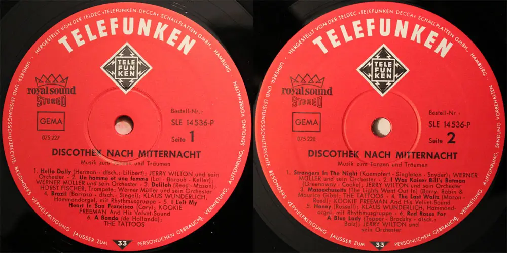 Discothek Nach Mitternacht is a 1969 compilation released exclusively in Germany. This was released by Telefunken.