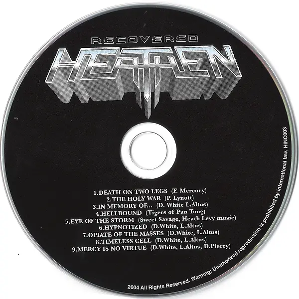 I was never a fan of Heathen's, even in their prime. I think for me a big turn off was their cover of "Set Me Free." I personally didn't care for that, what did initially attract me to the band was the fact that they had worked with Ronnie Montrose. When I got this compilation of covers & demos, my expectations for such a mix of material, wasn't very high. I do admire them for taking a chance & opening the record with two songs, that I never heard as thrash/power metal hybrid, “Death on Two Legs” by Queen & “The Holy War” by Thin Lizzy. Who would have thought?