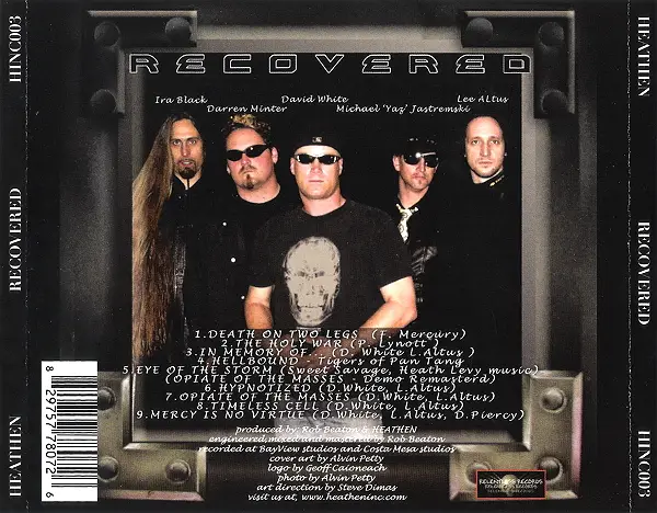 In 2001, Heathen reunited with David White, Lee Altus, Ira Black, Mike Jastremski and Darren Minter, to play the Thrash of the Titans concert to help Chuck Billy and Chuck Schuldiner raise funds for Billy’s throat cancer treatment and Schuldiner’s brain cancer treatment. The concert was a huge success, but in 2004, Mike “Yaz” Jastremski left the band again, and was replaced by Ulysses Siren bassist Jon Torres. A full-length album, Recovered was released on Relentless Metal Records, consisting of re-recorded old material and cover songs.