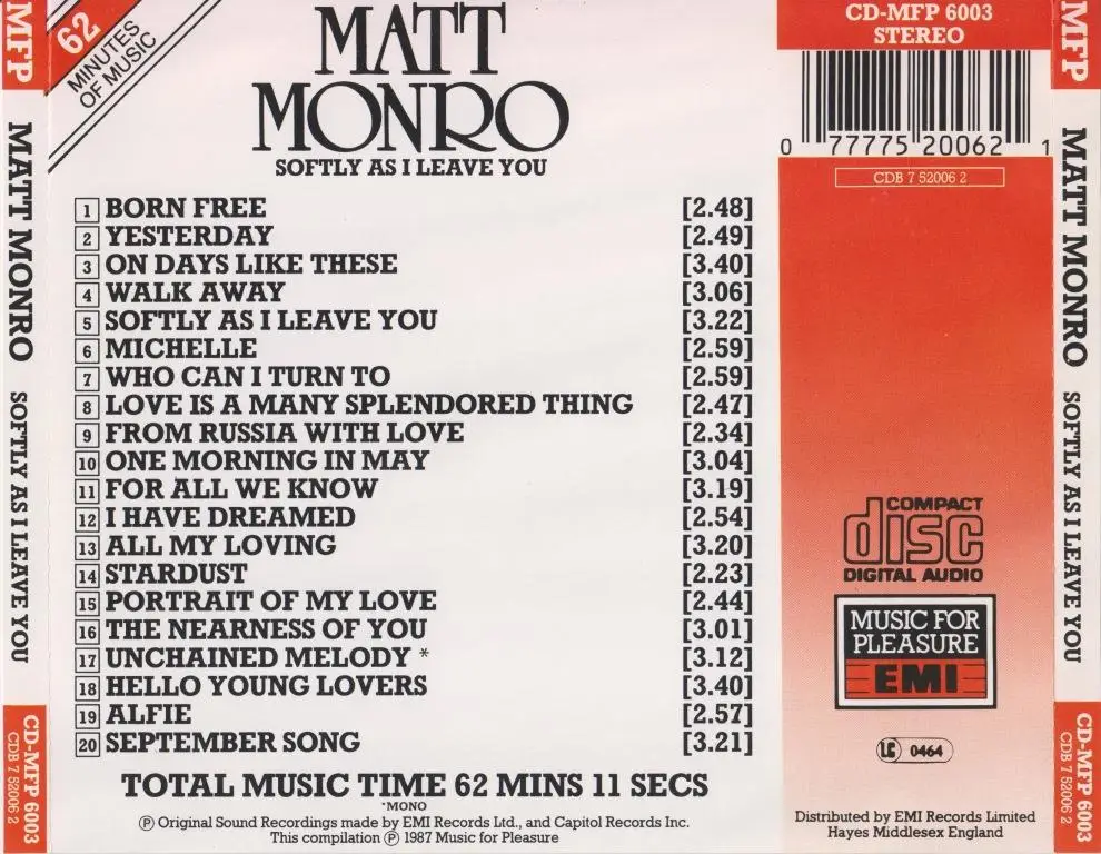 Release of this CD: 1987 [CD Music For Pleasure/EMI (UK), Cat.# CD-MFP 6003 (CDB 7 52006 2) / UPC: 077775200621]
