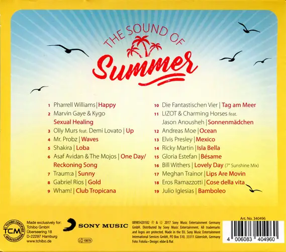 The Sound Of Summer is a 2017 compilation CD presenting some of the best in modern pop along with a few classic summertime gems. This was organized by Sony Music in Germany.