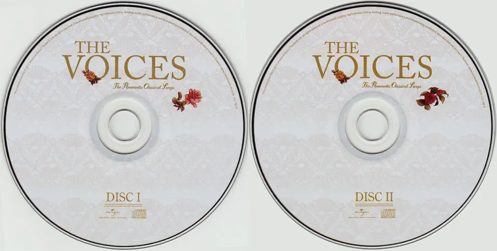 The Voices: The Romantic Classical Songs is a 2CD compilation of classical and opera artists performing songs from the pop music realms. This was released by Universal Music Thailand.