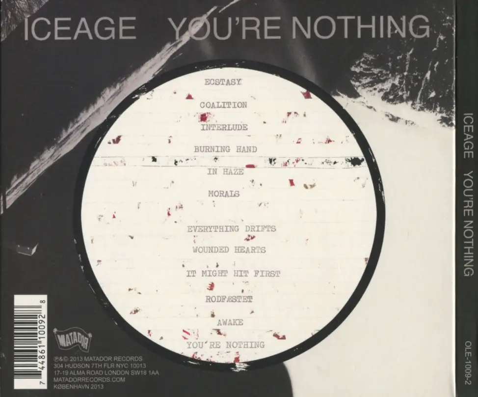 Just out of their teens, it seems Copenhagen's Iceage have only added to the anxiety and tension that made their debut album, New Brigade, so compelling. But now, they're challenging their raging emotions instead of simply expressing them. You're Nothing, Iceage's sophomore album, is the sound of a band pushing their singular mix of punk, Goth, hardcore, and post-punk to even further extremes. It's overwhelming how many ways Iceage have found to write the short aggressive rock song.