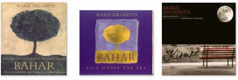 At his second album 'BAHAR' (LIBRA MUSIC / 2000), Ablianitis met the world famous Indian flute player, Pt. Hariprasad Chaurasia, and one of the best Greek singers, Manolis Lidakis. Not only 'BAHAR' is a very interesting project, but also it was hit at once. Ablianitis formed his own group and toured Greece, FYROM and Turkey. His music became famous, and many labels ask for license to include tracks of BAHAR in their collections. On January 2004 was released MOSAIC (LIBRA MUSIC), the album of the famous Greek singer Maria Farantouri (featuring: Glen Velez, Fuat Saka, Pt. Hariprasad Chaurasia, Ross Daly). Ablianitis has given 3 songs to Farantouri and made all the arrangements of the album.