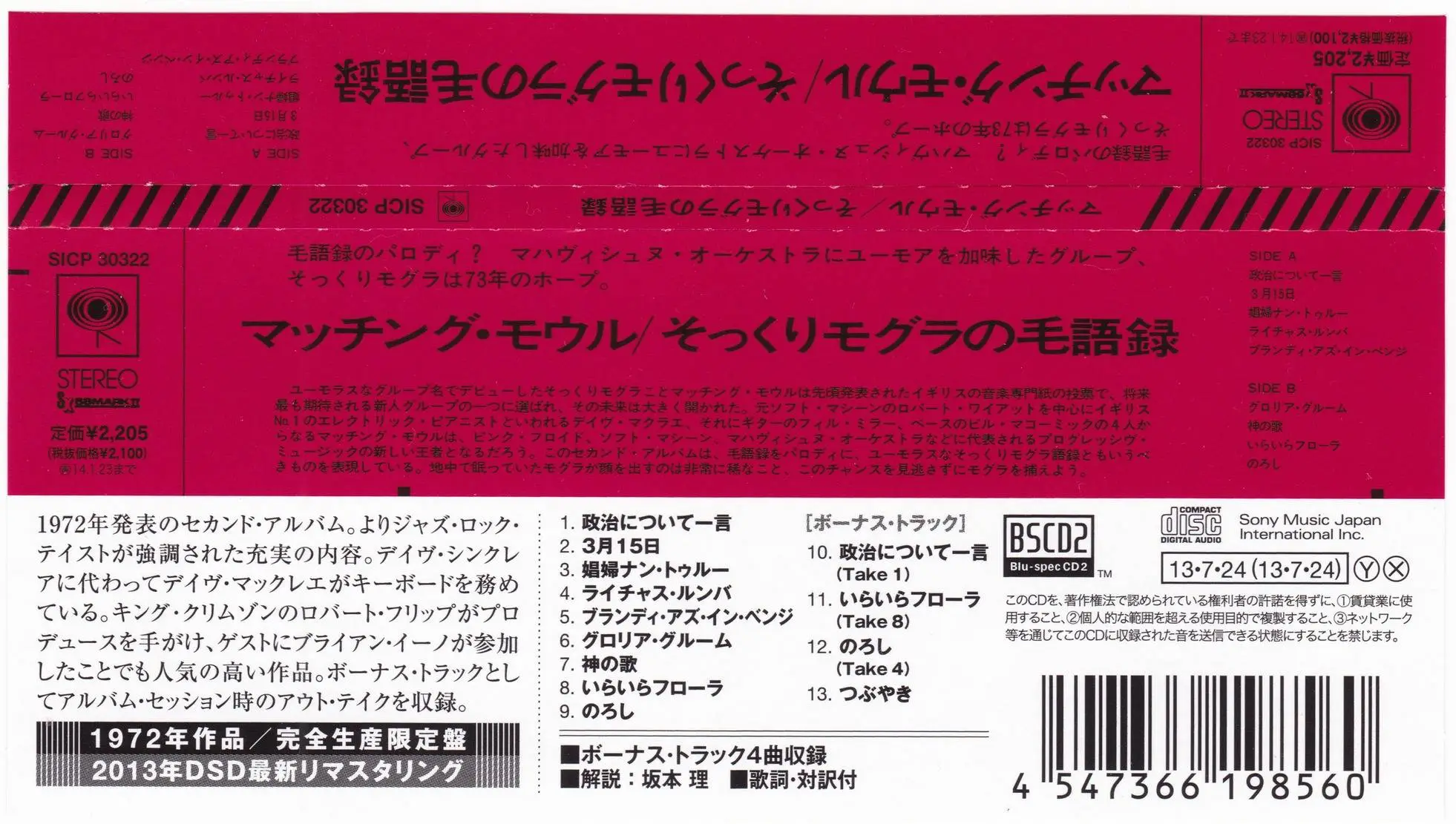 Matching Mole (Robert Wyatt) - Matching Mole's Little Red Record (1972) {2013 Columbia Japan Mini LP Blu-spec CD2 SICP 30322}