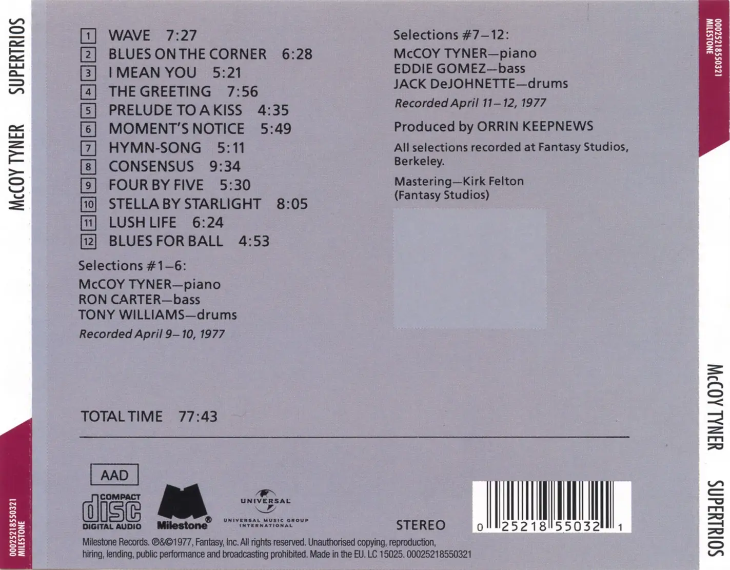 McCoy Tyner - Supertrios (1977) {Milestone 00025218550321 rel 1989}