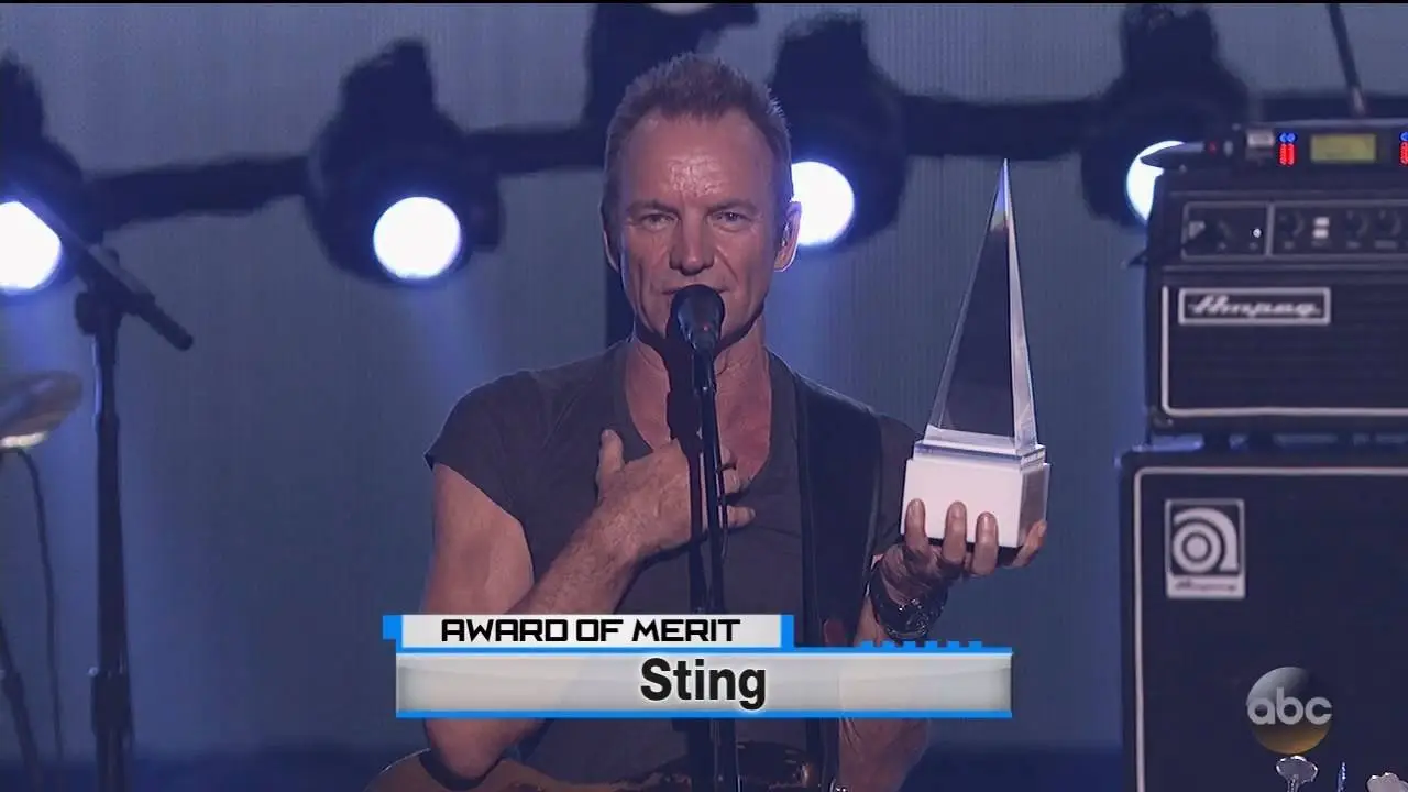 A very energetic performance by Sting at Microsoft Theatre, Los Angeles, where he is honored with American Music Award of Merit.