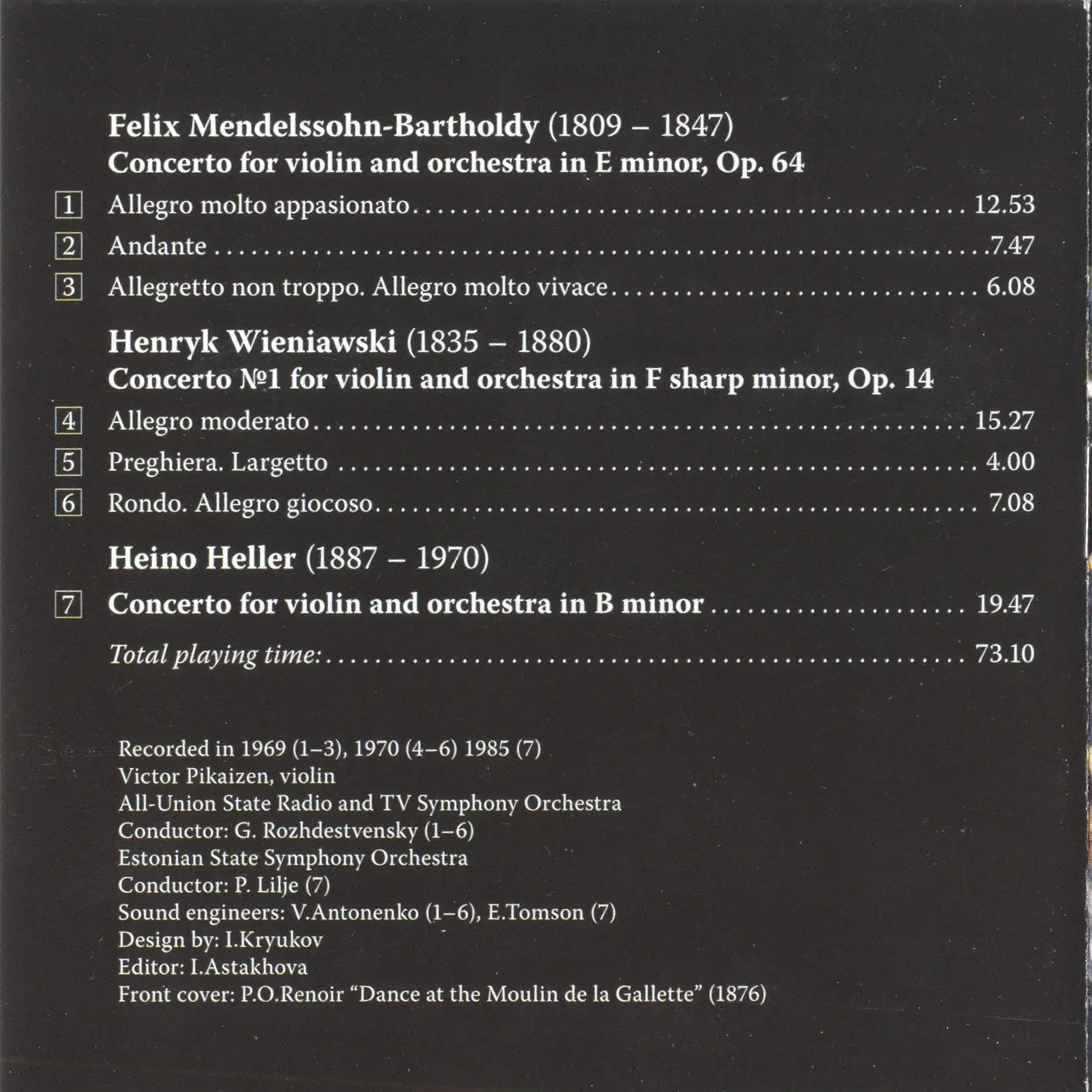 Victor Pikaizen: Mendelssohn, Wieniawski, Heino Eller - violin concertos (2008)
