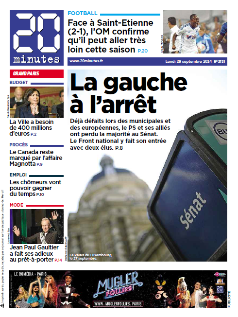 20 Minutes Du Lundi 29 Septembre 2014