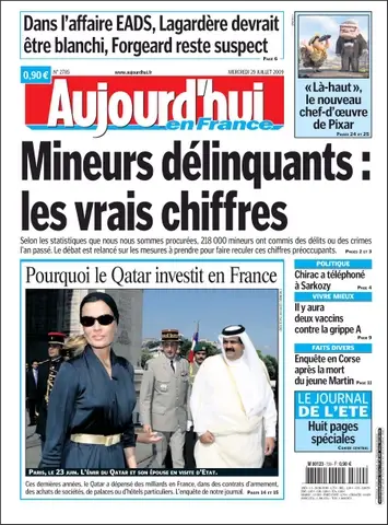 Aujourd'hui en France, du Mercredi 29 Juillet 2009.