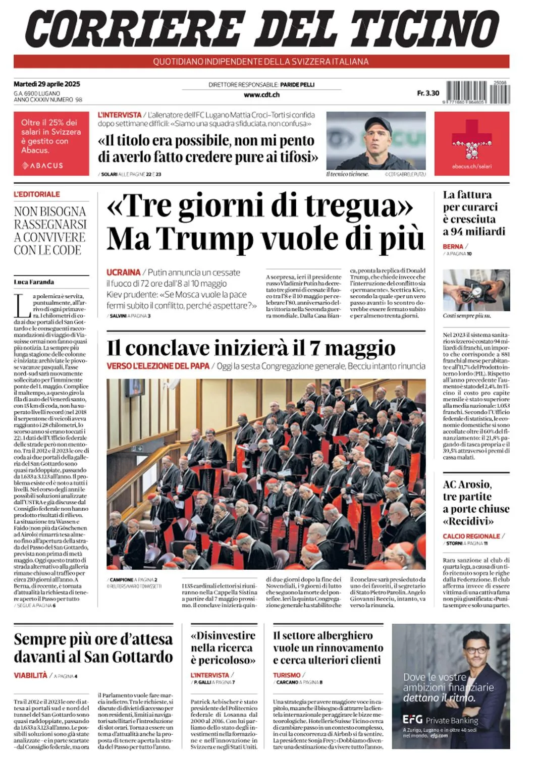 Corriere del Ticino - 29 Aprile 2025