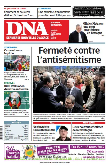 DNA - Les Dernières Nouvelles d'Alsace, Strasbourg - Lundi 18 Mars 2013