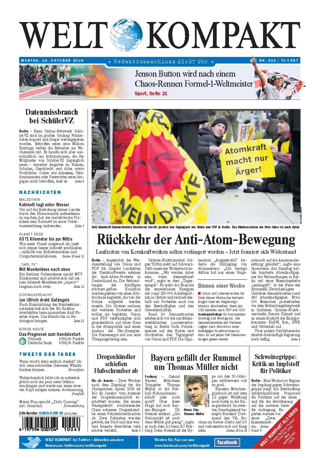 Die Welt kompakt vom 19. Oktober 2009