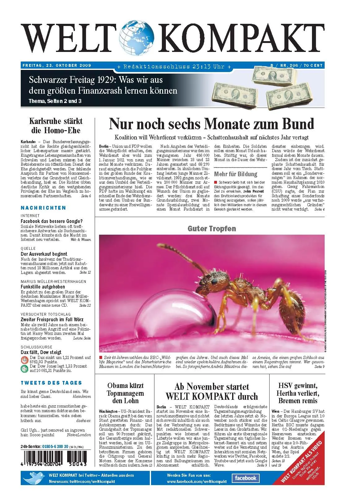 Die Welt kompakt vom 23. Oktober 2009