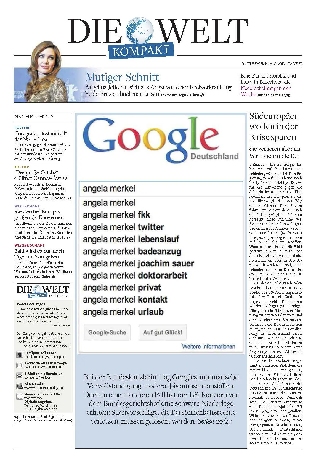 Die Welt kompakt vom Mittwoch, 15. Mai 2013