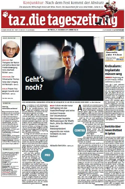 Die Tageszeitung TAZ vom 21. Dezember 2011