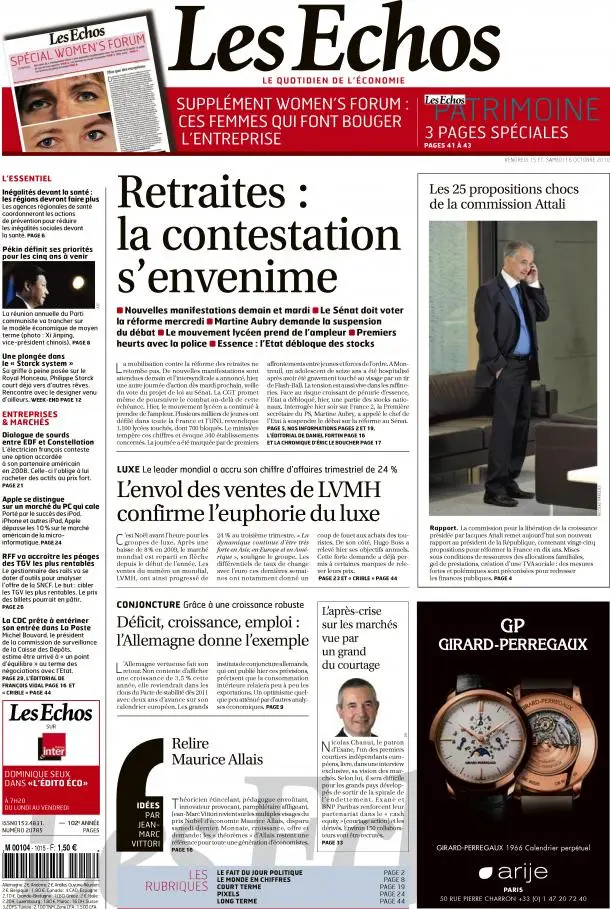 Les Echos, du 16 Octobre 2010