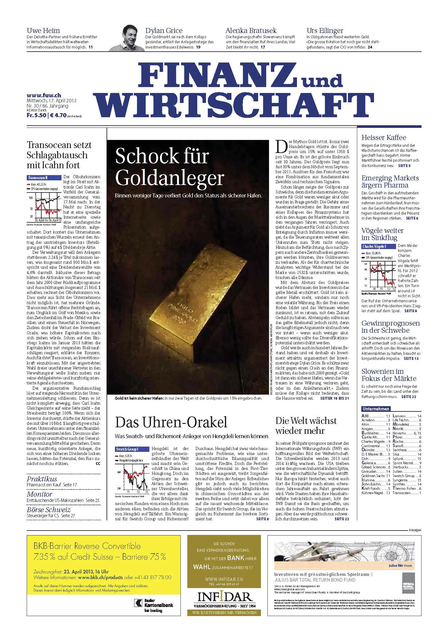 Finanz und Wirtschaft vom Mittwoch, 17. April 2013