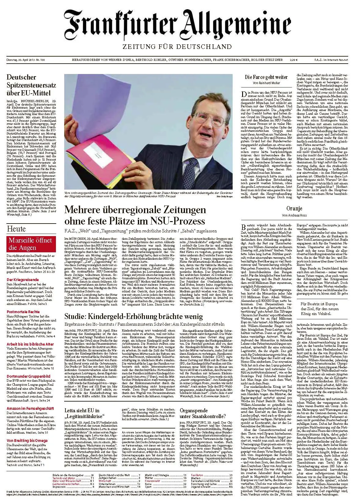 Frankfurter Allgemeine Zeitung vom Dienstag/Mittwoch, 30./01. April/Mai 2013