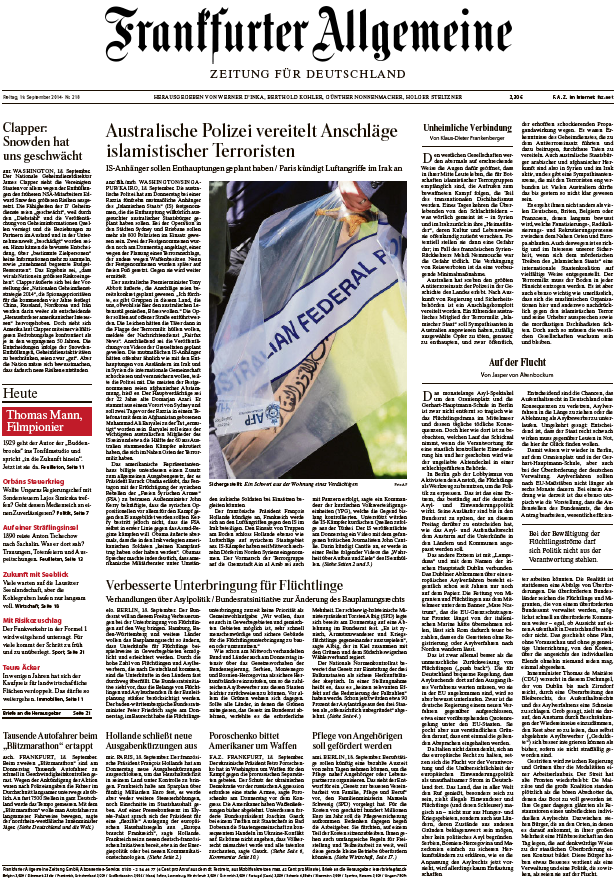 Frankfurter Allgemeine Zeitung vom Freitag, 19. September 2014