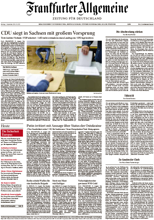 Frankfurter Allgemeine Zeitung vom Montag, 01. September 2014