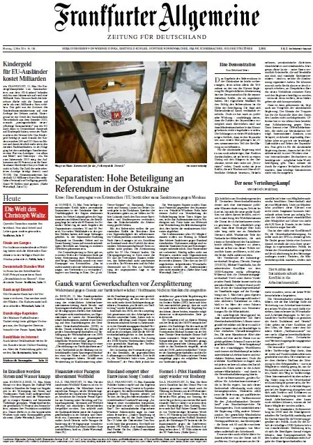 Frankfurter Allgemeine Zeitung vom Montag, 12. Mai 2014