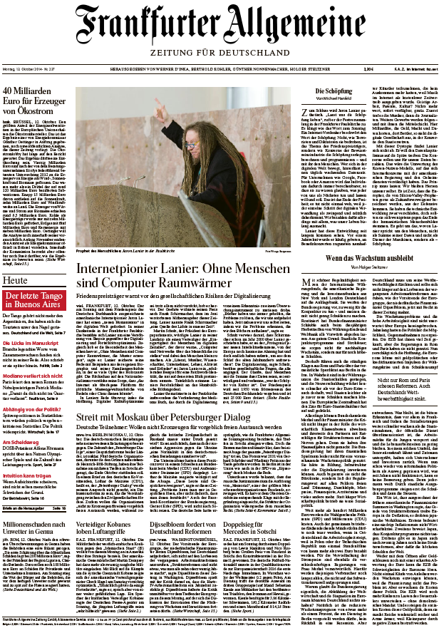Frankfurter Allgemeine Zeitung vom Montag, 13. Oktober 2014