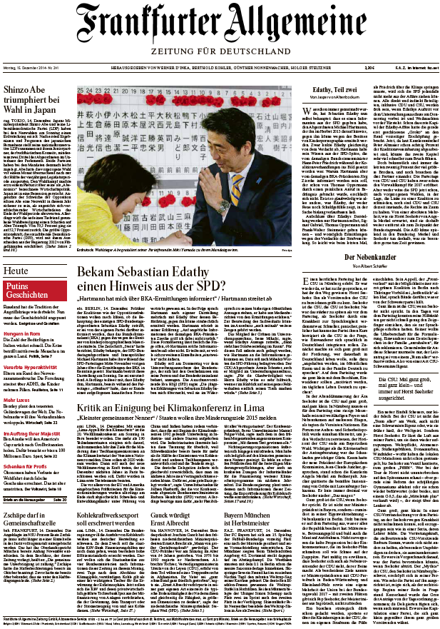 Frankfurter Allgemeine Zeitung vom Montag, 15. Dezember 2014