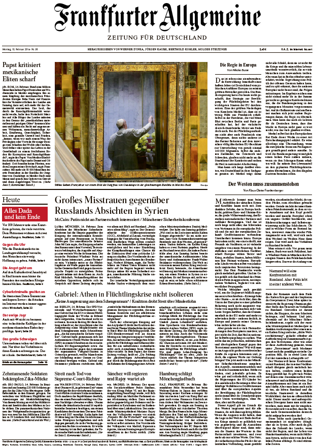 Frankfurter Allgemeine Zeitung vom Montag, 15. Februar 2016