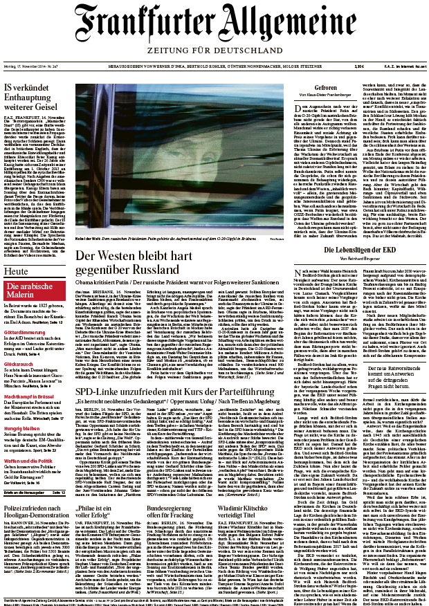 Frankfurter Allgemeine Zeitung vom Montag, 17. November 2014