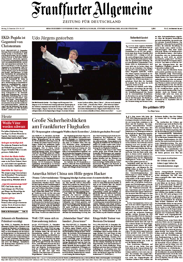 Frankfurter Allgemeine Zeitung vom Montag, 22. Dezember 2014