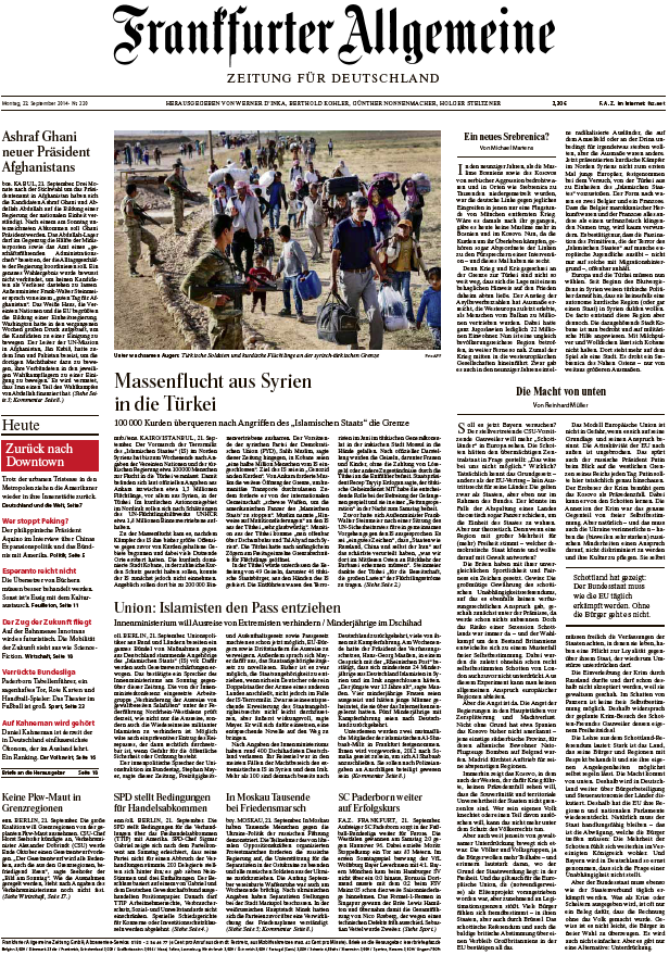 Frankfurter Allgemeine Zeitung vom Montag, 22. September 2014