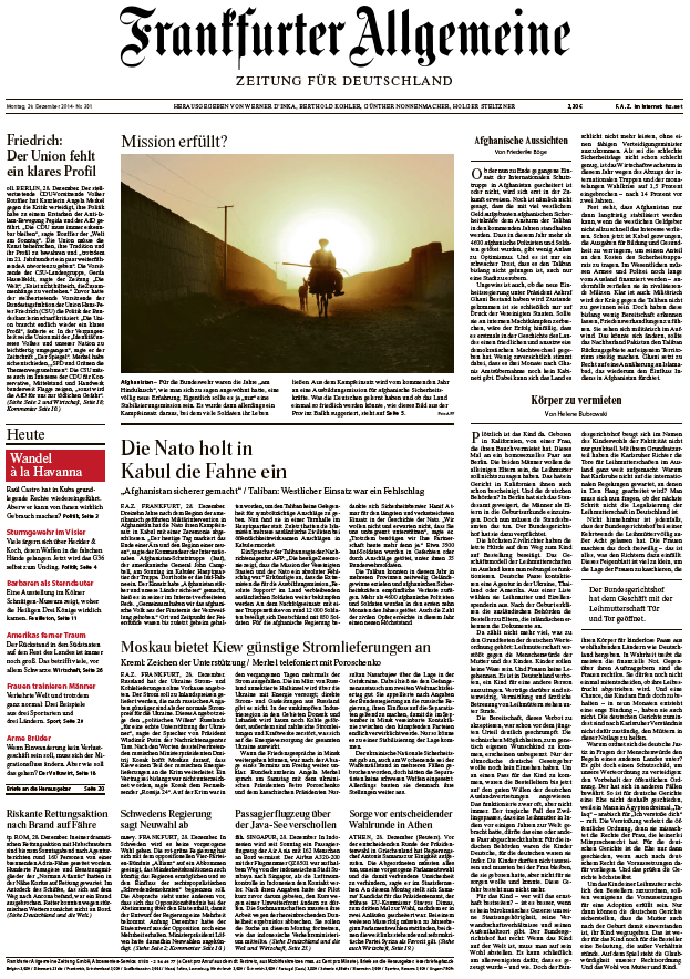 Frankfurter Allgemeine Zeitung vom Montag, 29. Dezember 2014