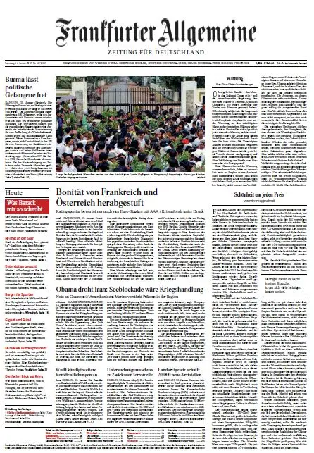Frankfurter Allgemeine Zeitung vom Samstag, 14. Januar 2012